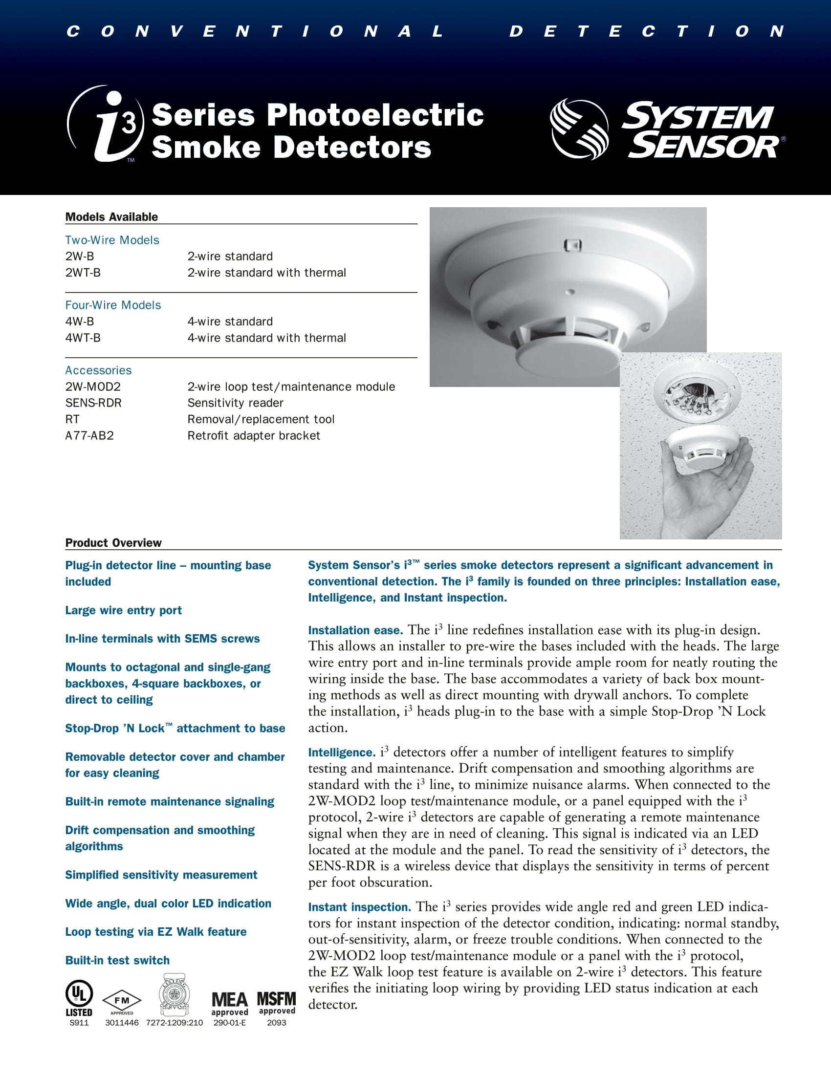 i3 Series Photoelectric Smoke Detectors บริษัท โฮมเทล อินเตอร์เนชั่นแนล จำกัด